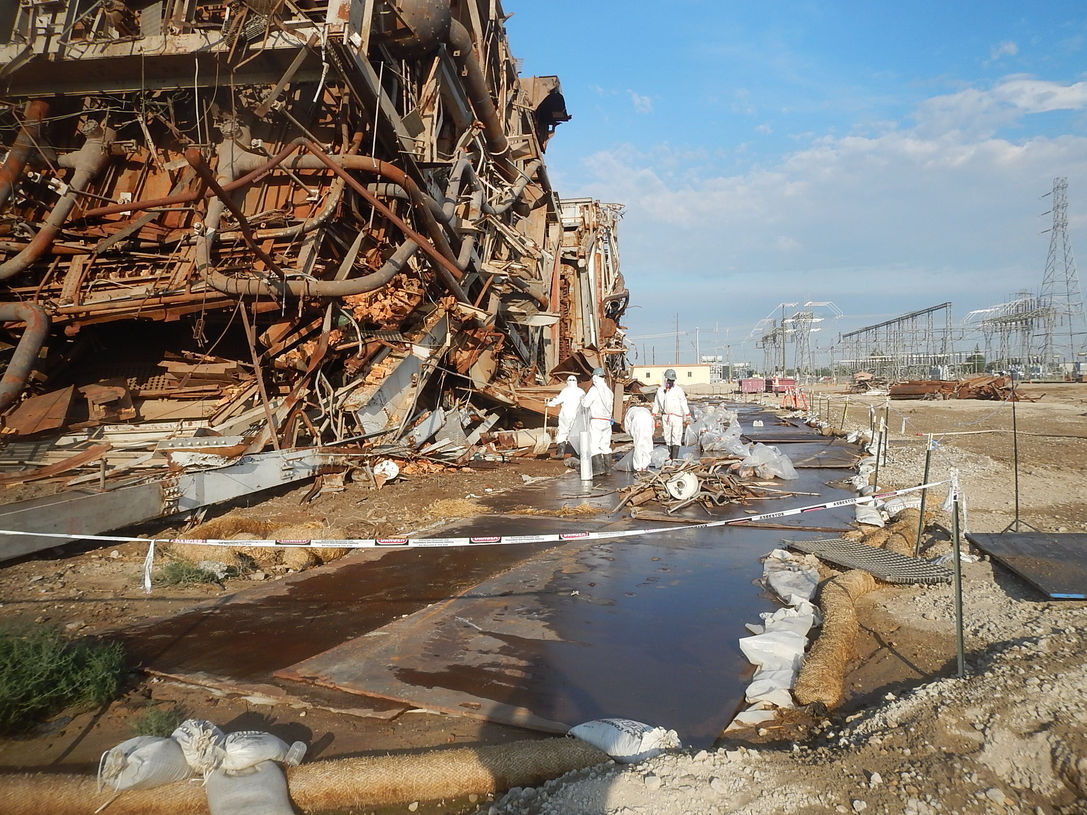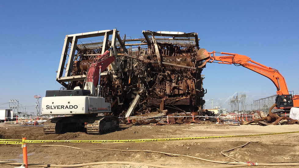 Silverado Contractors performed this project for PG&E. This was the third contract for PG&E on the same property. In a previous contract we removed the old boilers. The scope of work was underground removal. At the surface, the abandoned boiler foundations resembled a giant concrete checkerboard with dirt in the squares, just a hint of what was below. Other remains of the old plant poked up from the dust – a big concrete pad from a motor, a pair of smokestack foundations, and a building foundation from the old Quonset huts we’d torn down years ago. Off to the North, the tank farm stood vacant, its tanks removed; the earthen dikes broken through. We removed 120 truckloads of concrete checkerboard buried five feet in the earth. Along the way, we ran into old asbestos transite ducts, hauled off 100 truckloads of contaminated dirt, graded and backfilled 17-acres of blown dust and capped it all off with a soil binder approximately nicknamed “gorilla snot”. The schedule was 40 days.